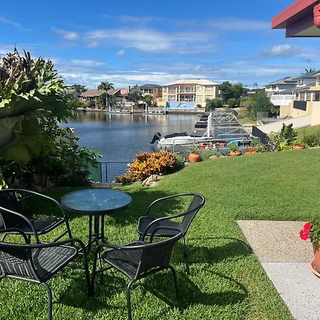 Waterfront BnB offers spacious, recently renovated rooms overlooking a serene lake. The property includes an outdoor dining area for guests to enjoy meals al fresco amid a peaceful setting. With a pool available all year round, it provides a relaxing retreat in close proximity to Mermaid Waters. Guests can engage in nearby outdoor activities or simply relax by the water.