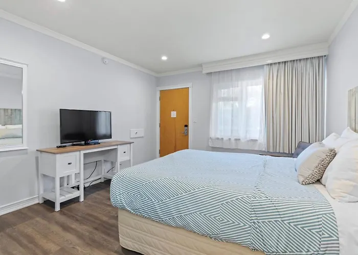 Ocean Lodge Santa Monica Beach Hotel features a vintage 1950s California beach style and offers splendid access to Santa Monica Pier and other attractions. With rooms equipped with modern amenities like flat-screen TVs and beach gear for guest use, this hotel emphasizes comfort and nostalgia. Ideal for families or couples, guests can enjoy free tea and coffee service available all day while experiencing the sunny atmosphere of the beachfront location. Its charming vintage design and friendly ambiance invite guests to enjoy carefree beach days.